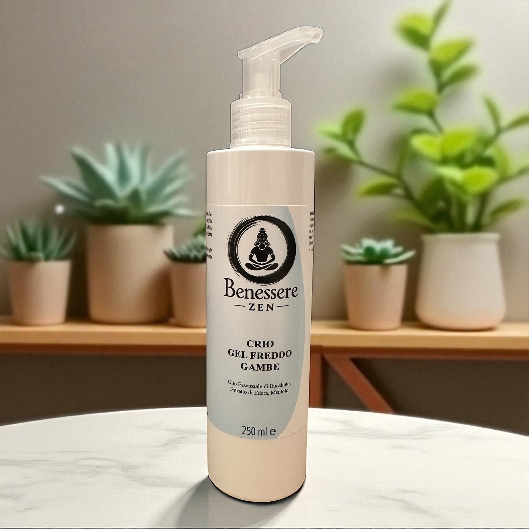 Crio Gel Freddo per Gambe con Edera Biologica, Eucalipto e Menta Piperita. Ideale per donare una sensazione di freschezza e sollievo immediato a gambe stanche, gonfie o appesantite. La sua formula innovativa stimola la microcircolazione cutanea e riduce la sensazione di pesantezza, lasciando la pelle tonica e rigenerata.