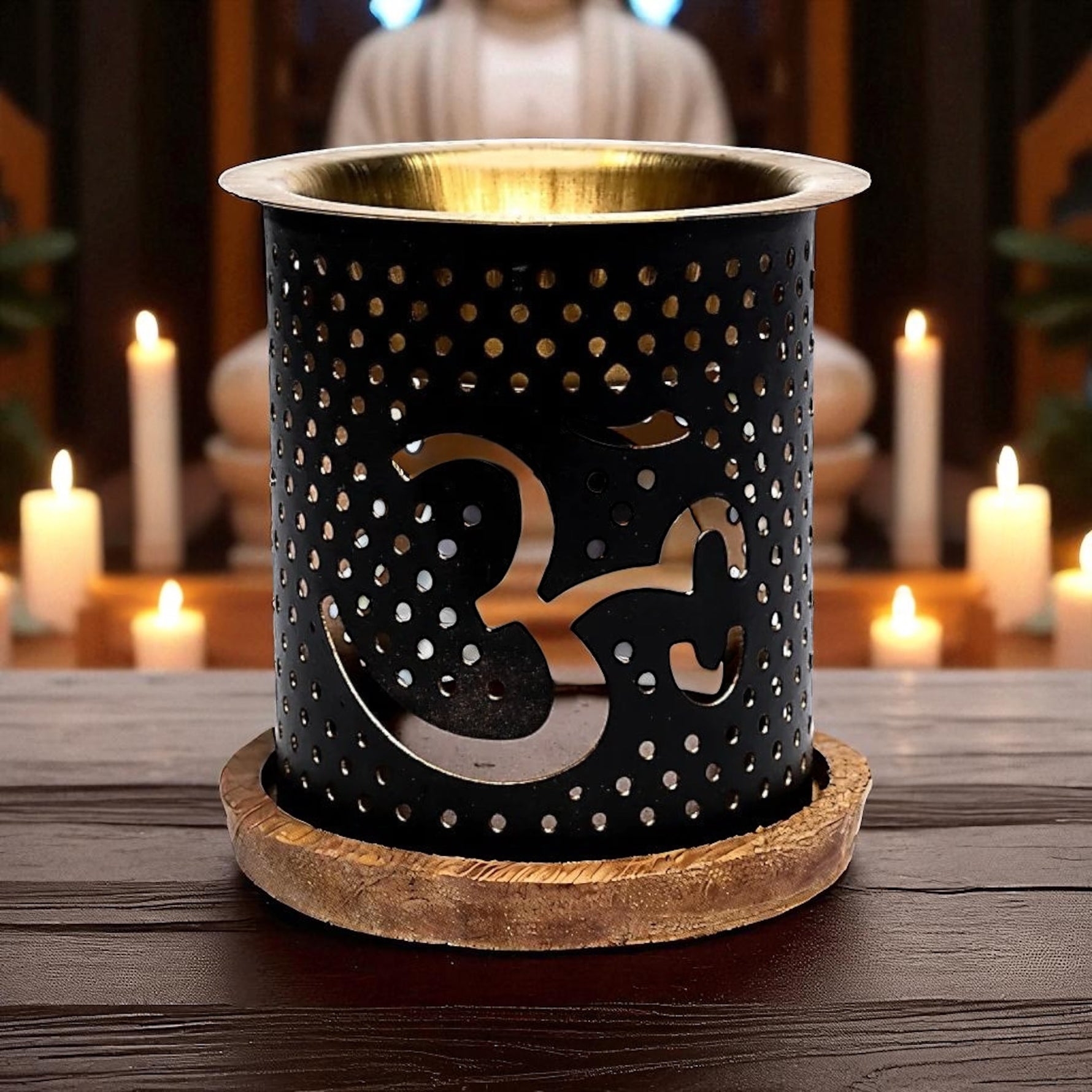 Brucia Essenze in Metallo con Base in Legno | Simbolo Om