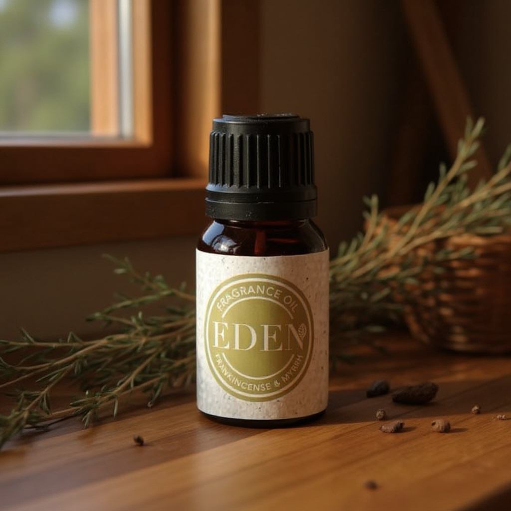 L'Olio Aromatizzato Eden al Franchincenso e Mirra in bottiglia da 10 ml. Una fragranza calda e resinosa che richiama antiche tradizioni spirituali e dona un’atmosfera avvolgente e meditativa.