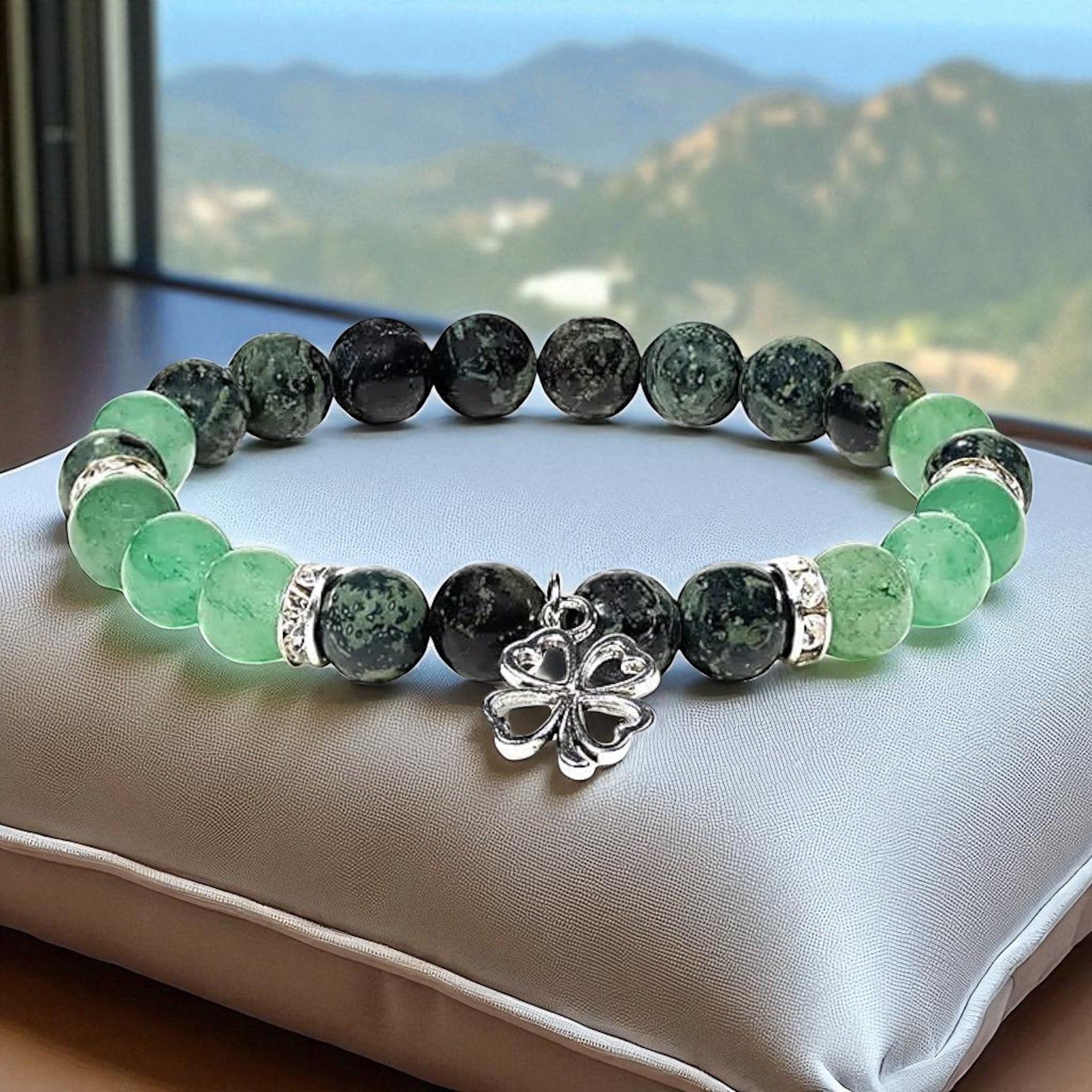 Braccialetto con Diaspro Kambaba e Avventurina - Trifoglio | Radicamento - Energia - Rigenerazione