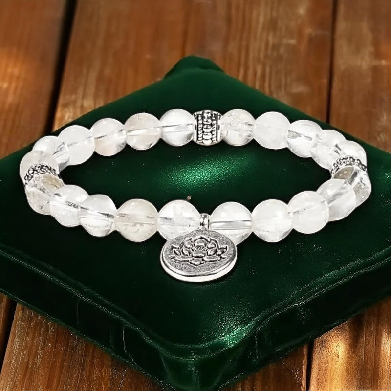Braccialetto con Cristallo di Rocca - Fiore di Loto | Potente Amplificatore Energetico - Chiarezza Mentale