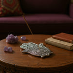 Brucia Incensi in Metallo a Forma di Mano Hamsa, simbolo universale di protezione e serenità. Con la sua lavorazione artigianale dettagliata, questo portaincensi unisce bellezza estetica e significato spirituale.