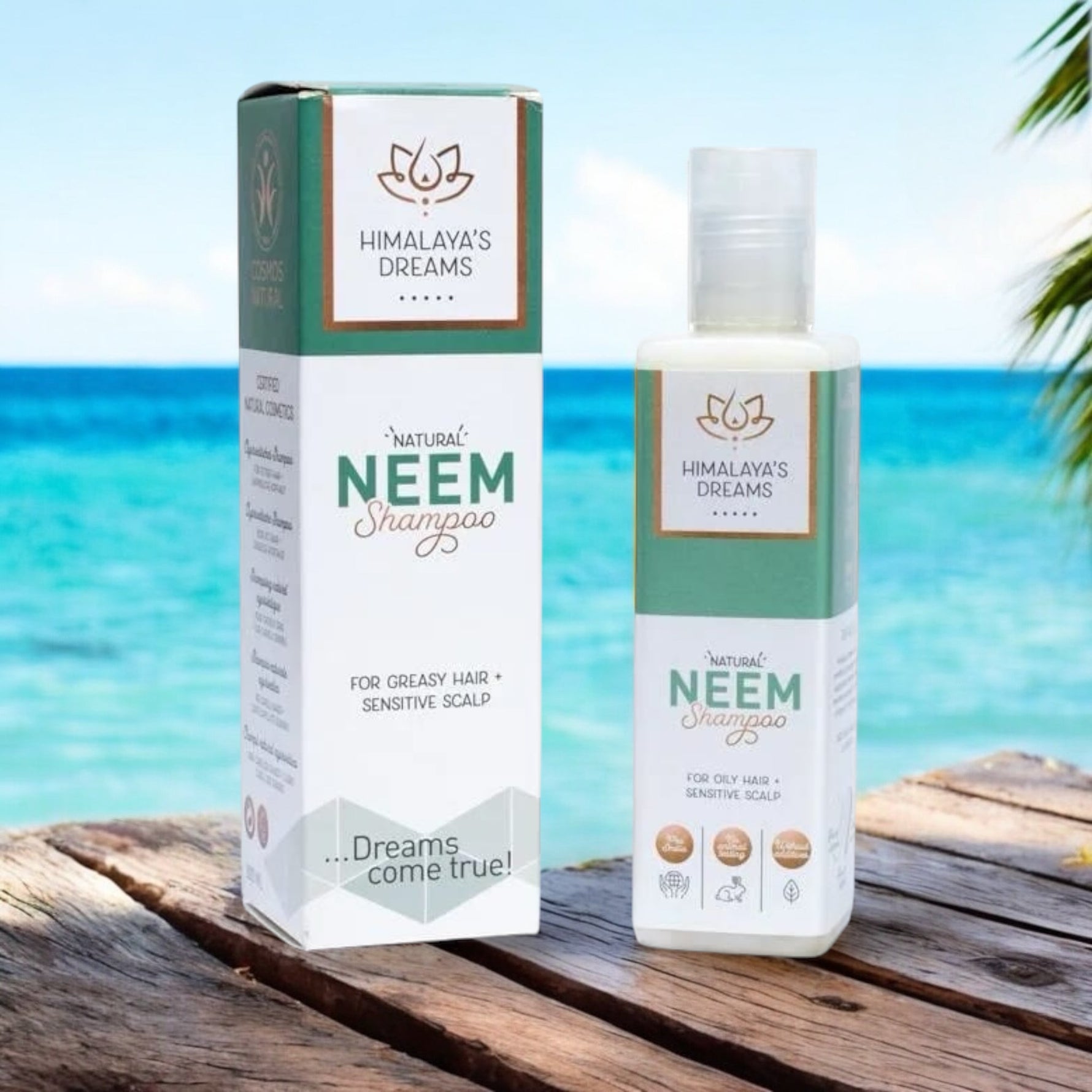 Shampoo Ayurvedico al Neem di Himalaya's Dreams, formulato per capelli grassi e cuoio capelluto sensibile. L’estratto di Neem aiuta a regolare la produzione di sebo, mentre la Calendula e la Salvia Sclarea rinforzano i capelli e donano lucentezza.