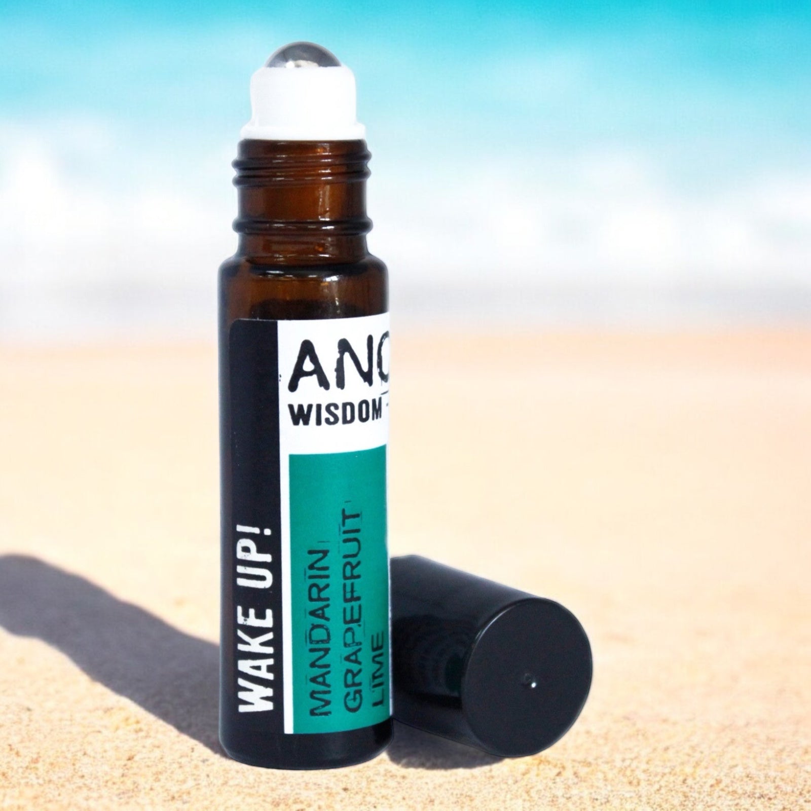 Roll-On Oli Essenziali - Wake Up!, risveglia i tuoi sensi con energia naturale. Miscela agrumata e rivitalizzante per iniziare la giornata con vitalità e freschezza.