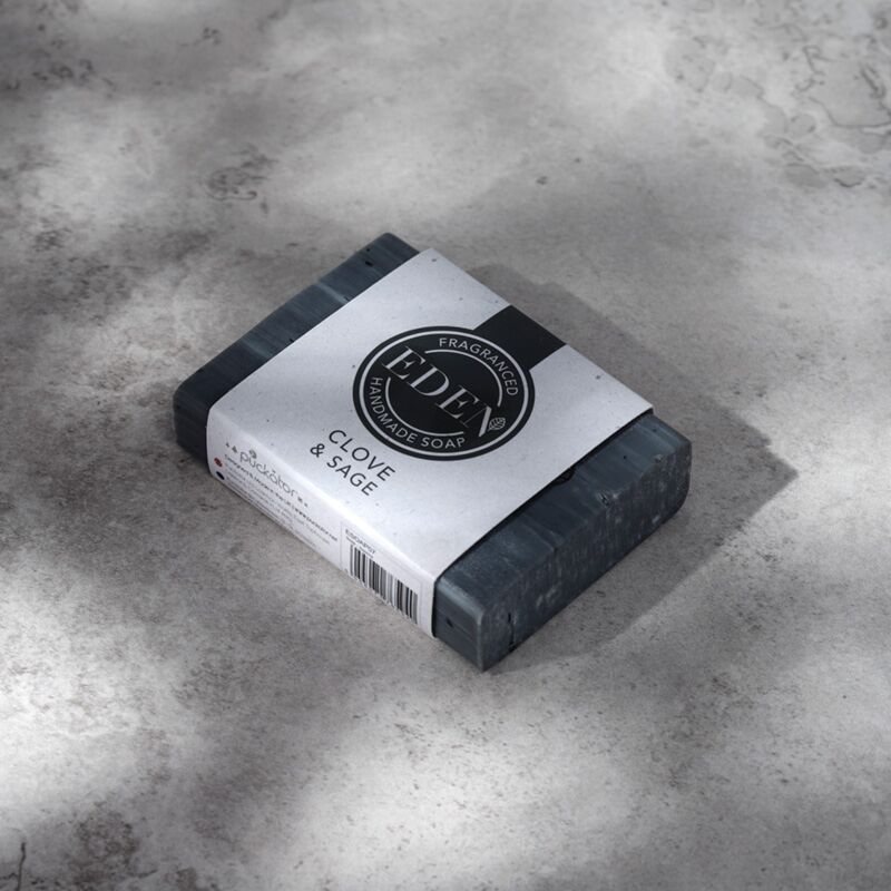 Saponetta artigianale Eden con chiodi di garofano e salvia, realizzata con oli naturali di alta qualità per una detersione delicata e aromatica.