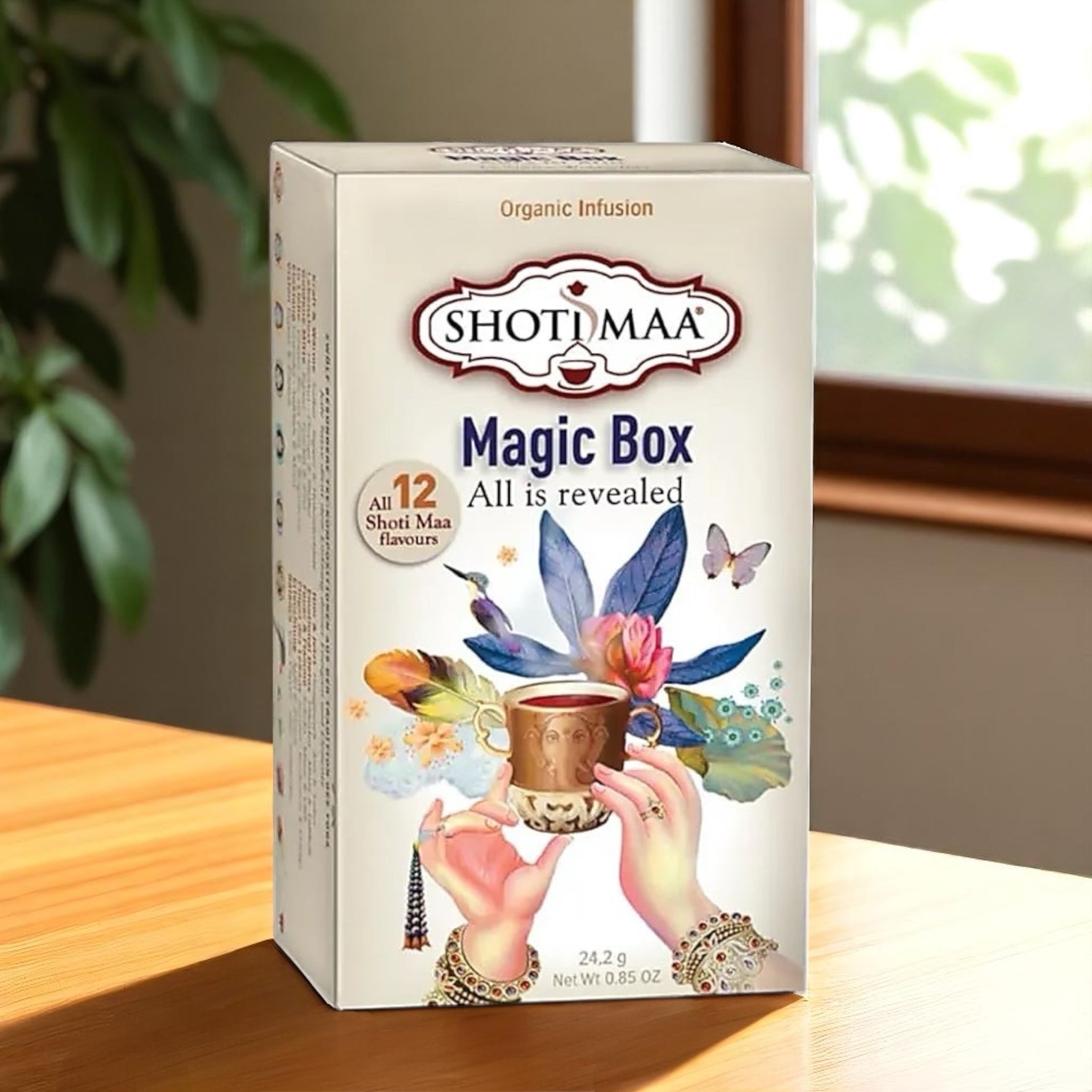 La Shoti Maa Magic Box è una raffinata selezione di 12 infusi biologici ispirati all'antica saggezza dei 7 Chakra e dei 5 Elementi. Ogni bustina è un invito a rallentare, respirare e ritrovare il proprio centro. Un percorso di armonia che attraversa corpo, mente e spirito, perfetto anche come regalo per chi ama prendersi cura di sé in modo naturale.